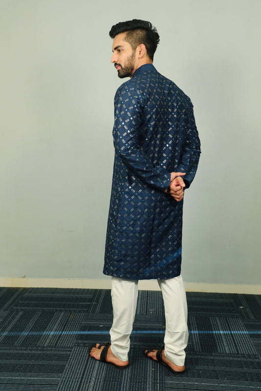 Sequins Mirror Embroidery Work Kurta Pajama for Men
