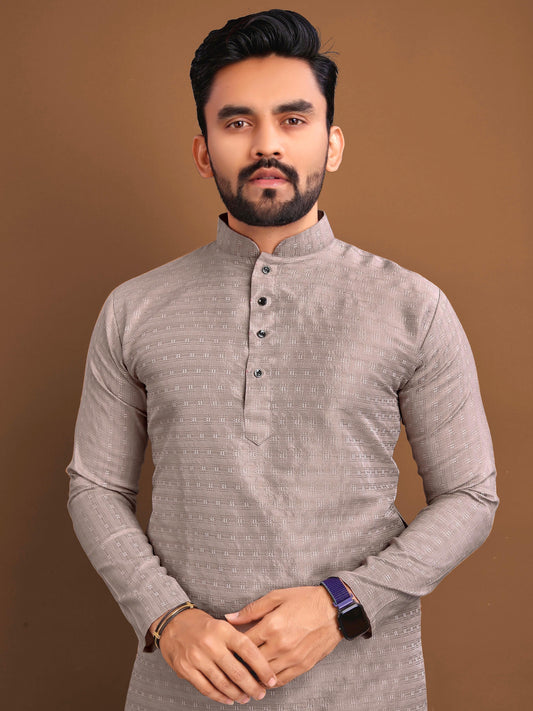 Cotton Blend with Embroidery Work Kurta For Men