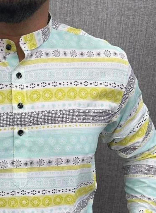 Light Green Color Printed Cotton Shirt For Men