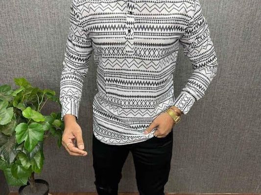 Black and White Color Leaf Printed Cotton Shirt For Men