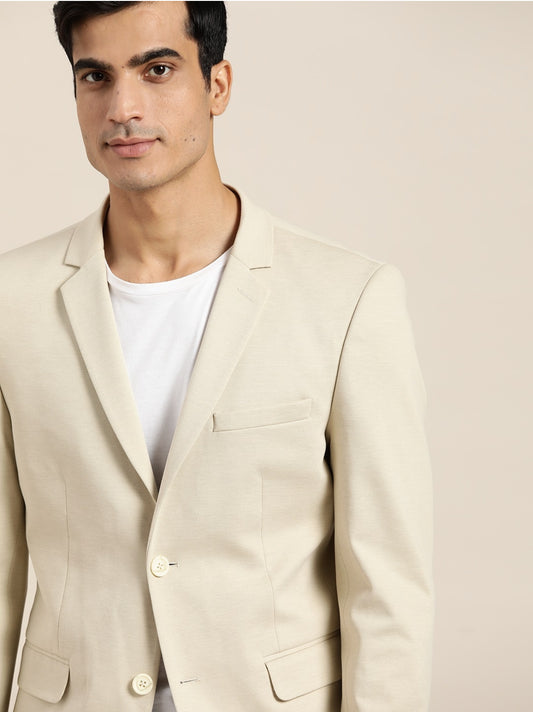 Men Grey Cream Coloured Solid Single Breasted Slim fit Smart Casual Blazer