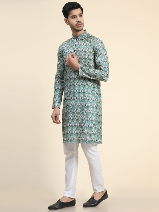 Green Color Reyon with Embroidery and Sequence Work Kurta For Men