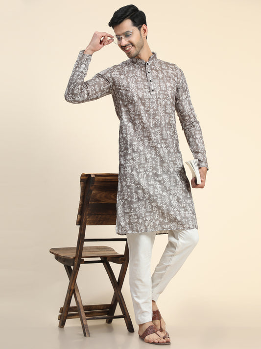 Grey Leheriya Sequence Work Kurta pyjama for Men