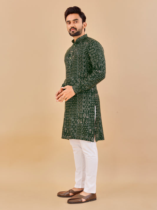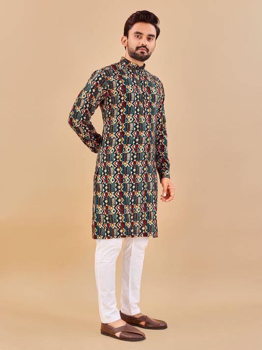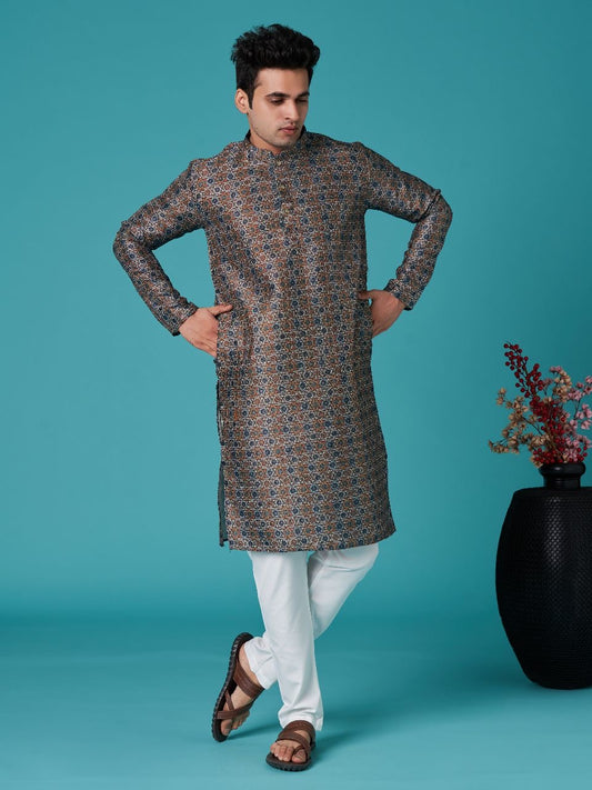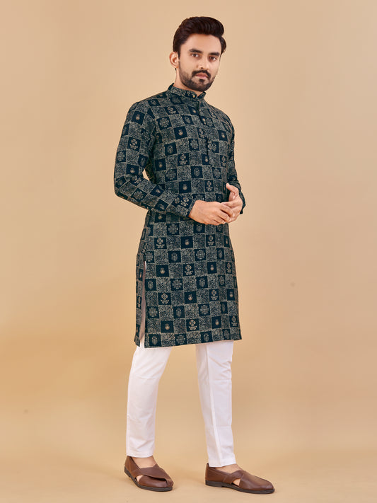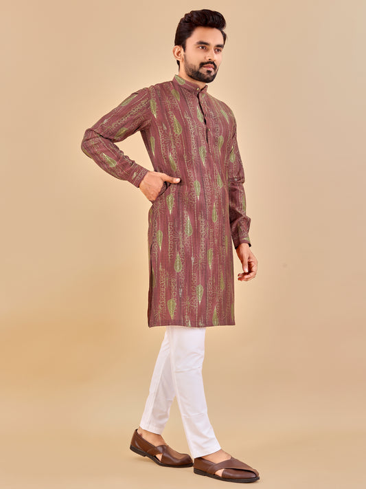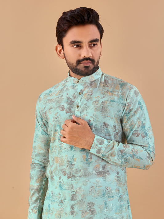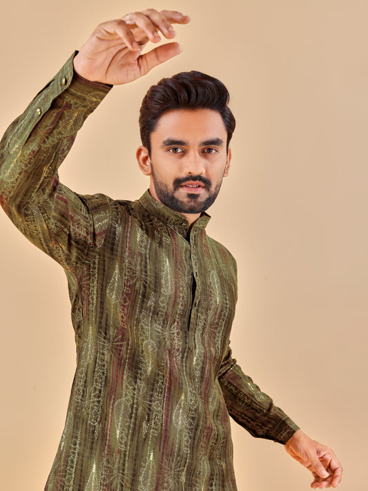Manzar Mehendi Cotton Foil Printed Kurta Pajama for Men