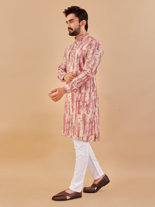 Manzar Pink Cotton Foil Printed Kurta Pajama for Men