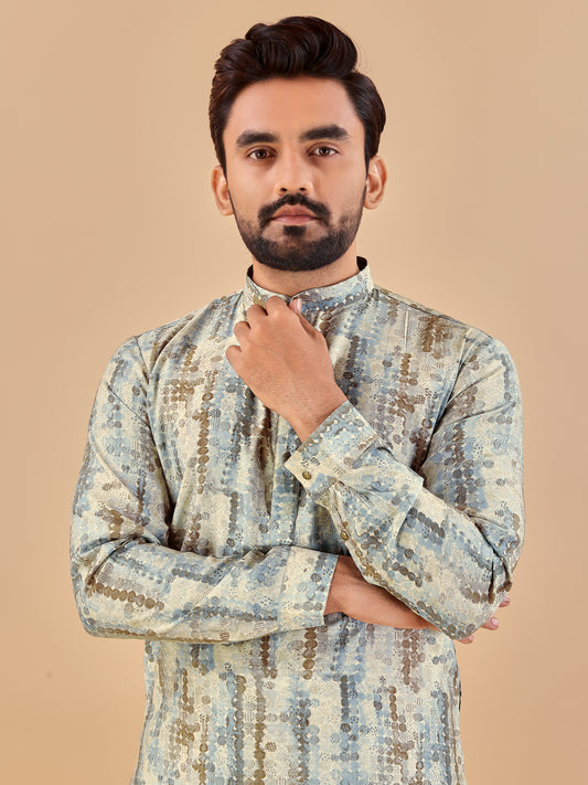 Manzar Grey Cream Cotton Foil Printed Kurta Pajama for Men