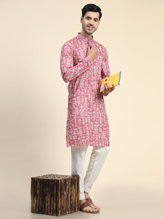 Pink Digital Printed Kurta pajama for Men