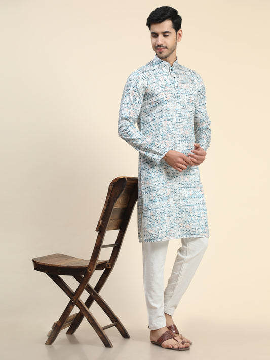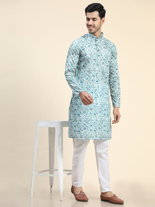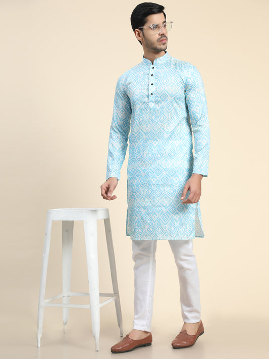 Sky blue Digital Printed Kurta Pyjama for Men