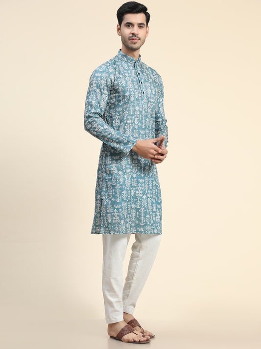 Rama blue Digital Printed Kurta Pajama for Men