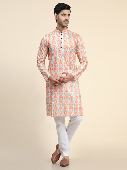 Orange peach Digital Printed Kurta pajama for Men