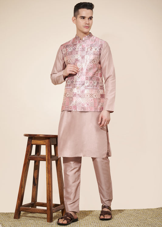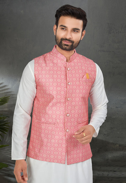 Pale Pink Color Wedding Function Modi Jacket For Men