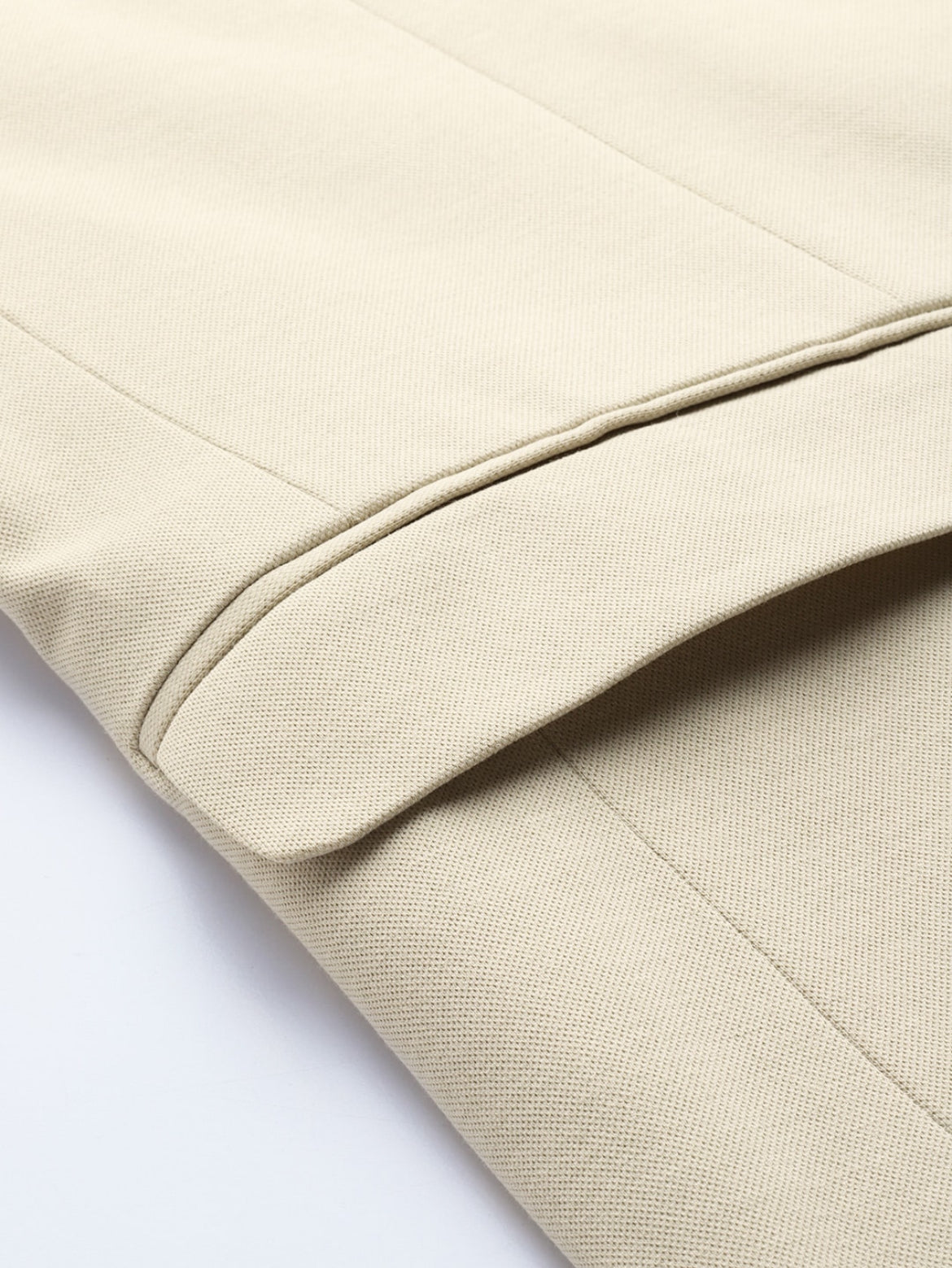 Cream solid woven smart casual blazer, has a notched lapel collar, single-breasted with button closure, long sleeves, four pocket